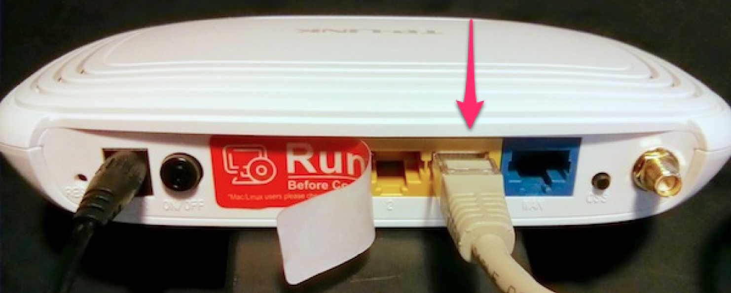 Nun kannst du den Knoten ans Internet anschließen. Dazu musst du das LAN-Kabel auf der Rückseite deines Knoten umstecken: Bisher hattest du das Kabel in der gelben Buchse. Jetzt muss es in die blaue. Verbinde dann noch das andere Ende des Kabels mit deinem Internet-Router und dein neuer Freifunkknoten ist am Netz. (Falls du den Router am Gastzugang deines Internet-Routers anschließt, achte darauf, dass der Mesh-VPN Port 11237 für UDP offen ist)